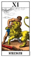 We all have different images and ideas that come to mind when we use the word, “strength.”    For many of us the image may be similar to the one depicted in the Swiss Tarot.