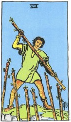 That’s a humorous way of putting it but it’s a way of life – and experiencing life – for a lot of people.  Some people don’t just get the Seven of Wands in a reading – they ARE the Seven of Wands.